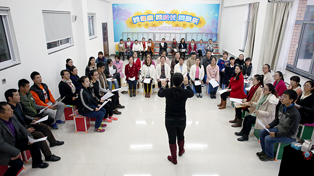 啟動儀式結束后,本溪分校全體教職工齊聚三樓音樂教室,開始了本溪分校教職工合唱團首次訓練。本溪分校教職工合唱團的啟動,昭示著本溪分校這個充滿朝氣的大家庭又一次綻放光彩,全體教職工朝氣蓬勃的精神面貌,讓整個合唱團充滿著和諧、向上的味道。